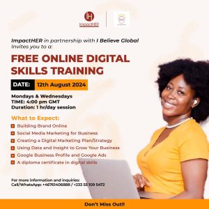 I Believe Global Women’s Empowerment Organisation, in partnership with ImpactHER, seeks to implement a transformative project aimed at empowering African female entrepreneurs. This initiative focuses on bridging the gender business financing gap and enhancing digital skills among women entrepreneurs to realize their full economic potential.